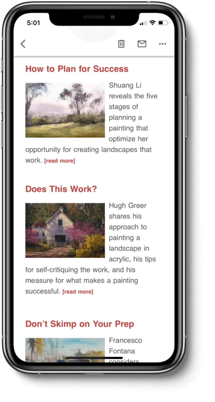 And to make sure that you never miss an inspiring detail, we’ll drop a selection of our favorite tips, painting ideas and news right into your inbox each week with the American Watercolor Weekly newsletter.